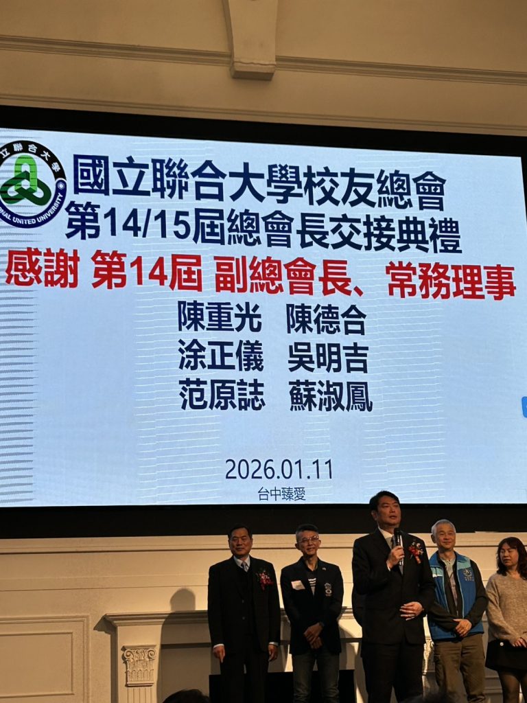 校友動態傑出校友活動紀實邱理事長率領會務團隊參與國立聯合大學校友總會第14屆、15屆總會長交接典禮Byalumni_adminOn2026 年 1 月 11 日In校友動態, 傑出校友, 活動紀實 恭喜臺中高工化工科畢業的傑出校友陳重光學長榮任聯合大學校友總會第15屆總會長黃尚煜校長、邱春茂總會長、化工科友會施文昌理事長暨主任們一同前往祝賀祈祝會務昌盛、澤被校友聯合中工一家親學長學弟聚一堂 上一 文章 舉辦114年臺中高工校友總會第三屆第6次理監事聯席會議 下一 文章 承蒙師恩•永恆情誼 校友總會幹部1月14日拜訪羅瑞銘會長 發佈留言取消回覆發佈留言必須填寫的電子郵件地址不會公開。 必填欄位標示為 * 名稱 * 電子郵件 * 網站 新增留言 * 將我的姓名、電子郵件和網站保存在此瀏覽器中,以便下次留言時使用。 我同意 隱私權政策 發佈留言