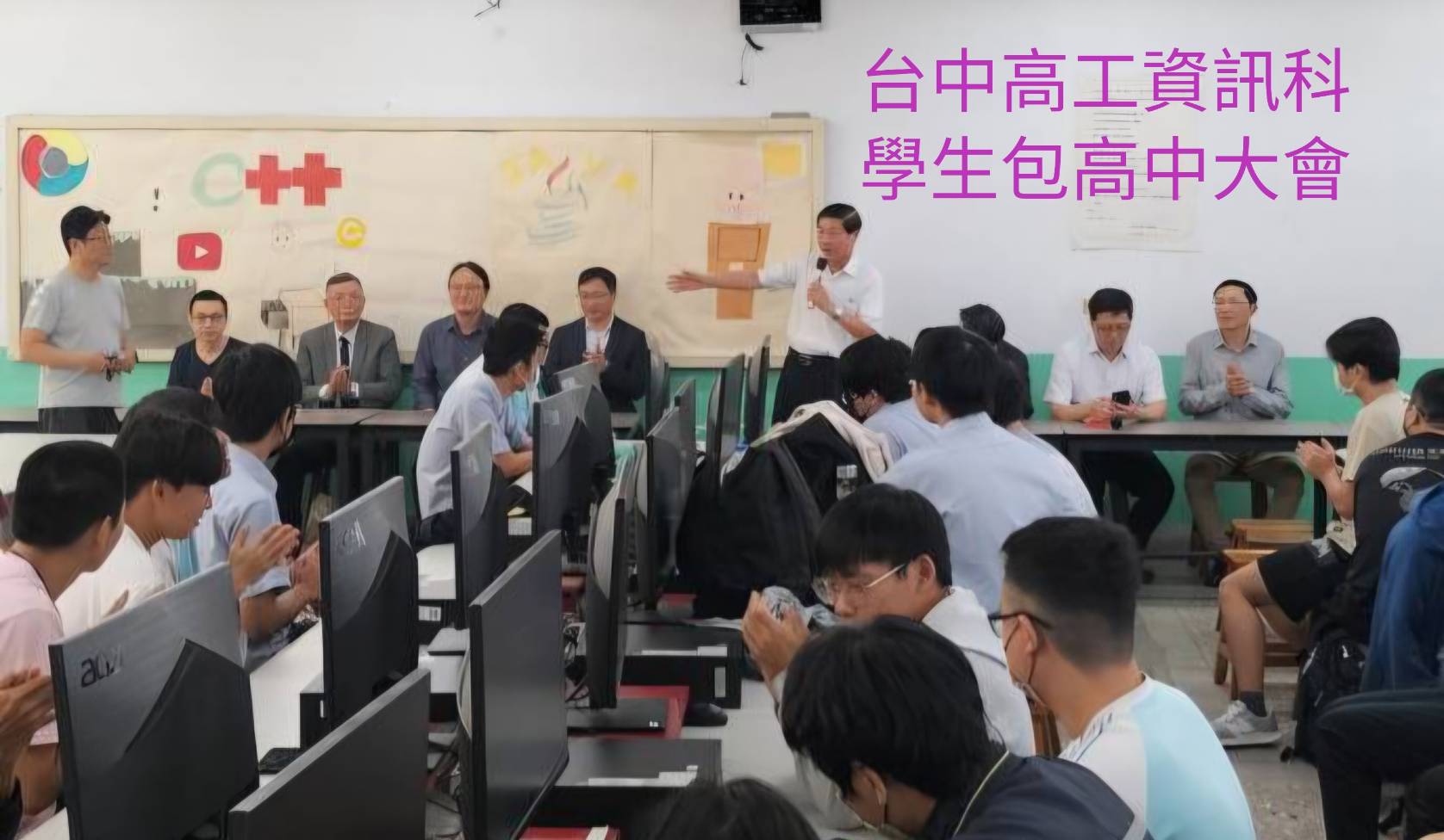 臺中高工資訊科包粽活動於115年3月25日隆重舉行,感謝臺中高工校長黃尚煜、臺中科大副總務長朱中華、臺中科大資工系李承翰教授、臺中科大智慧生產工程系主任、勤益科大電資學院院長程榮祥、勤益科大進修部主任張傳旺、、家長會長陳明志、榮譽家長會長葉森雄、家長會副會長林隆俊。感謝各位嘉賓蒞臨高三學生「包粽包中」大會,給予學生滿滿鼓勵祝福,敬祝每位學生今年統測成績,心想事成「第一志願」。