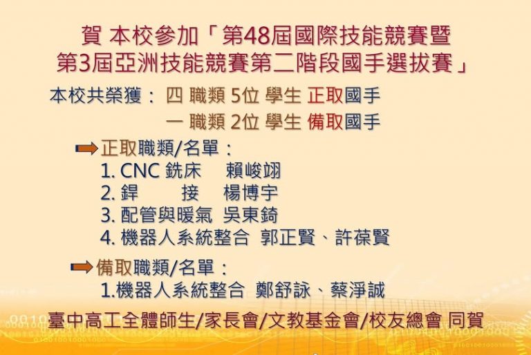 第48屆國際技能競賽暨第三屆亞洲技能競賽…